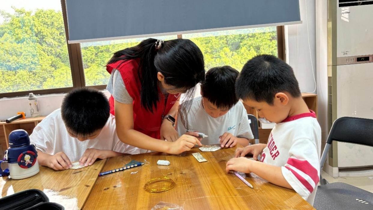 团队通过趣味英语启蒙课堂与沉浸式非遗技艺体验——从漆扇点染、油纸伞制作到掐丝珐琅创作,引导孩子们在歌声、游戏与手作中感知语言魅力、触摸传统智慧。活动累计产出非遗作品120余件,不仅点燃了青少年对文化传承的兴趣,更在童心深处播下了文化自信的种子,诠释了“非遗新芽,文识共长”的深远意义。
